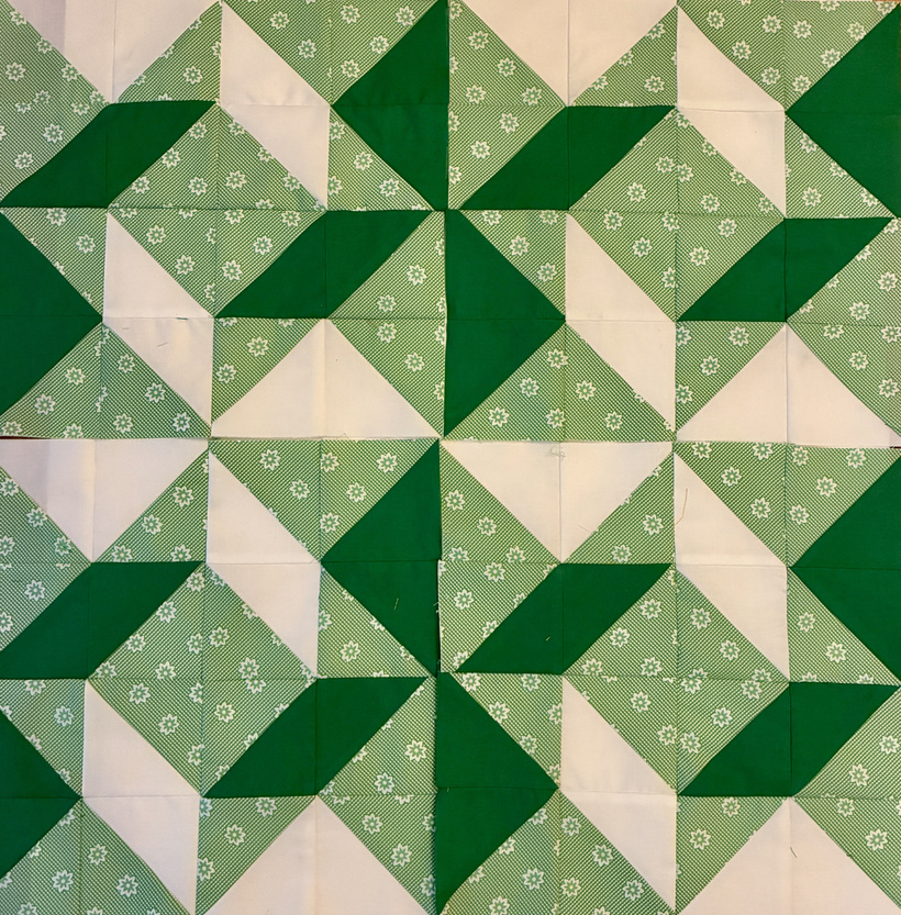 I’m so excited about this new block! It’s pretty easy (though not necessarily straight forward to make), and I love the designs the blocks make when you put them together (please note that I haven’t sewn these together yet: